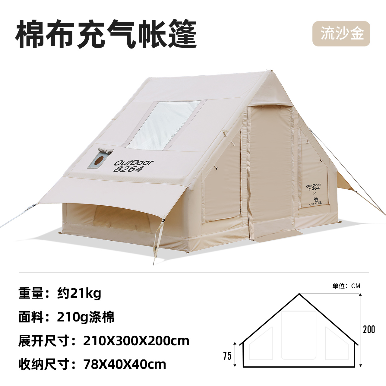 骆驼精致露营金字塔帐篷 棉布充气帐篷 1142253022-1