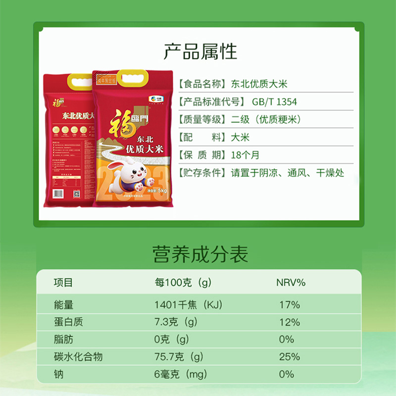 中粮 福临门东北优质大米(兔年专供版)5kg(两面真空)