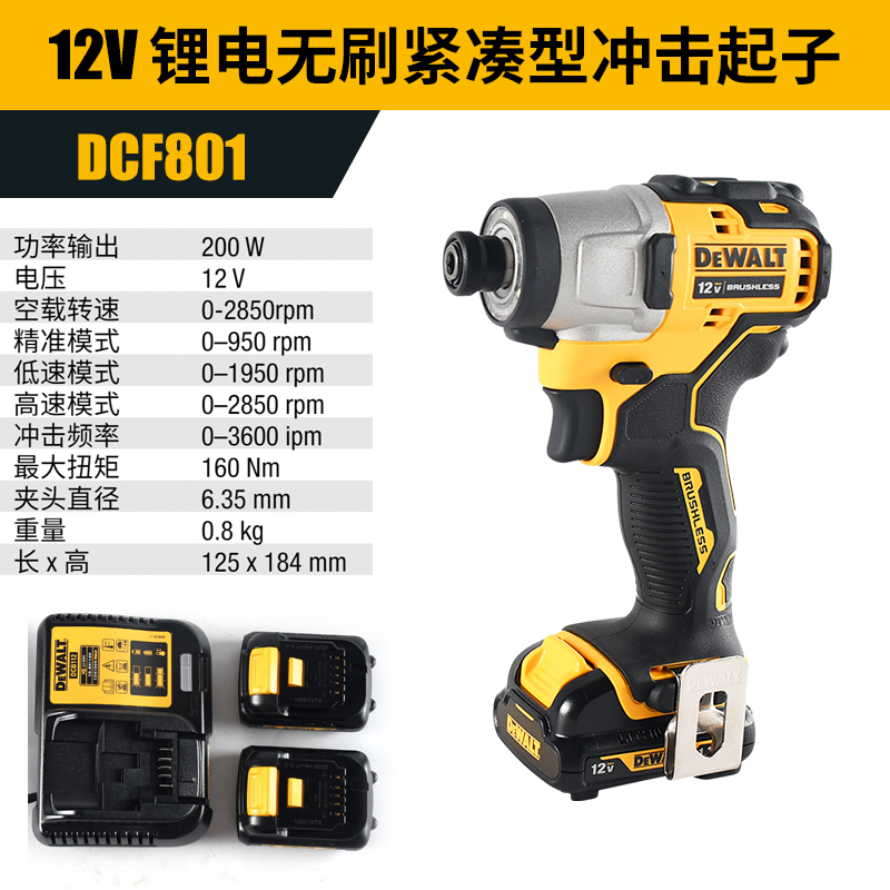 得伟12V锂电无刷紧凑型冲击起子 2x2.0Ah电池塑箱装 DCF801D2K-A9