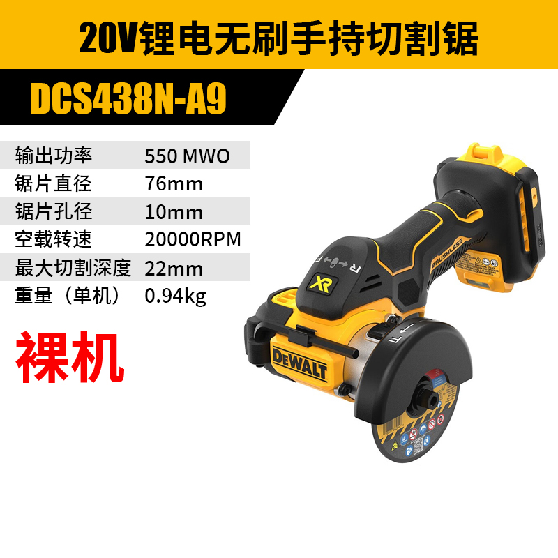 得伟20V锂电无刷手持切割锯单机纸盒装 1.8KG DCS438N-A9